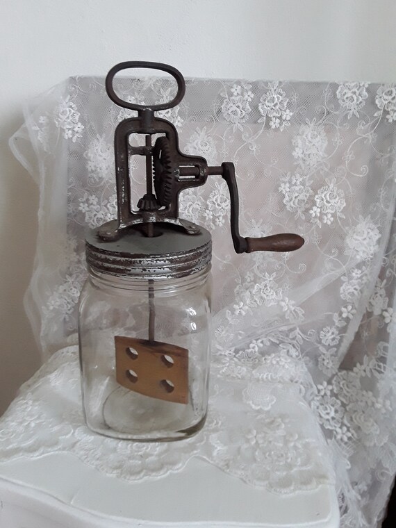 Antique Butter Mixing Glass Butter Extractor With Hand Crank Etsy Uk